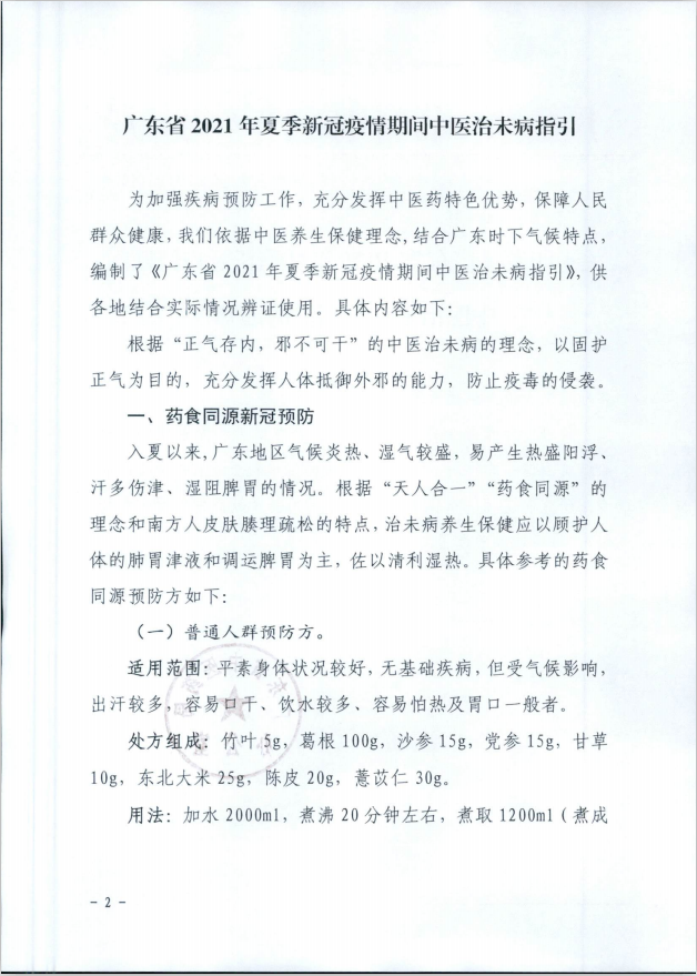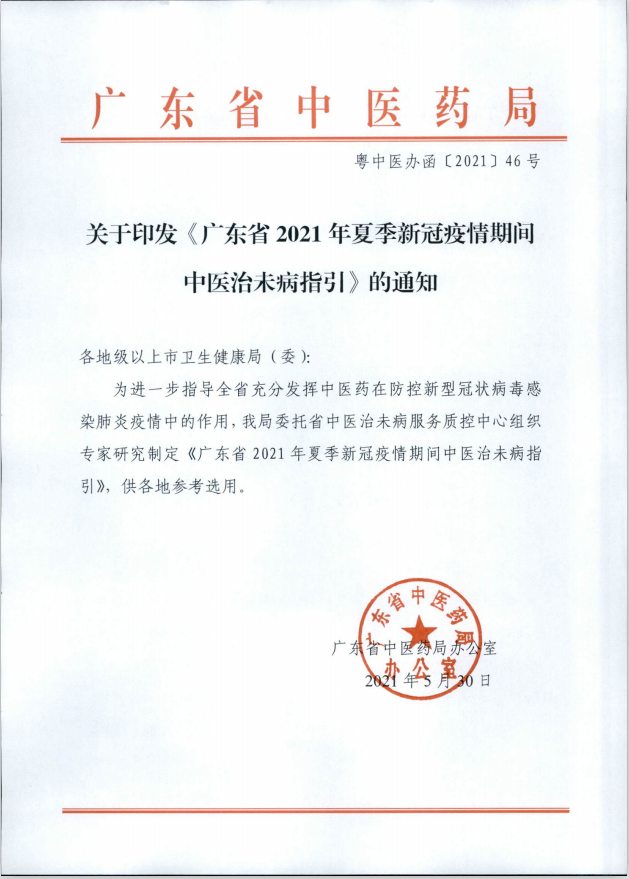 关于印发《广东省2021年夏季新冠疫情期间中医治未病指引》的通知