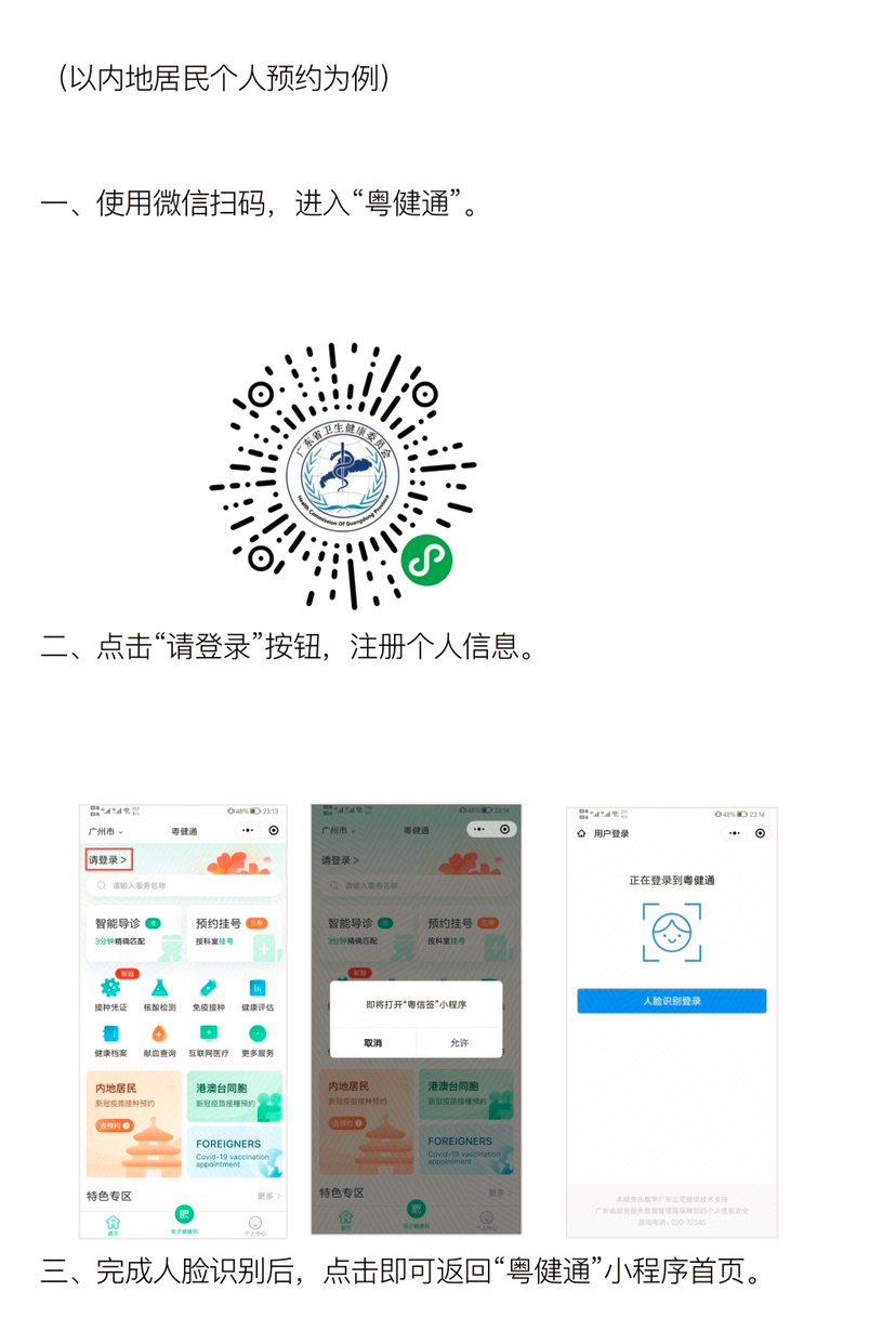 如何使用“粤健通”微信小程序预约新冠病毒疫苗
